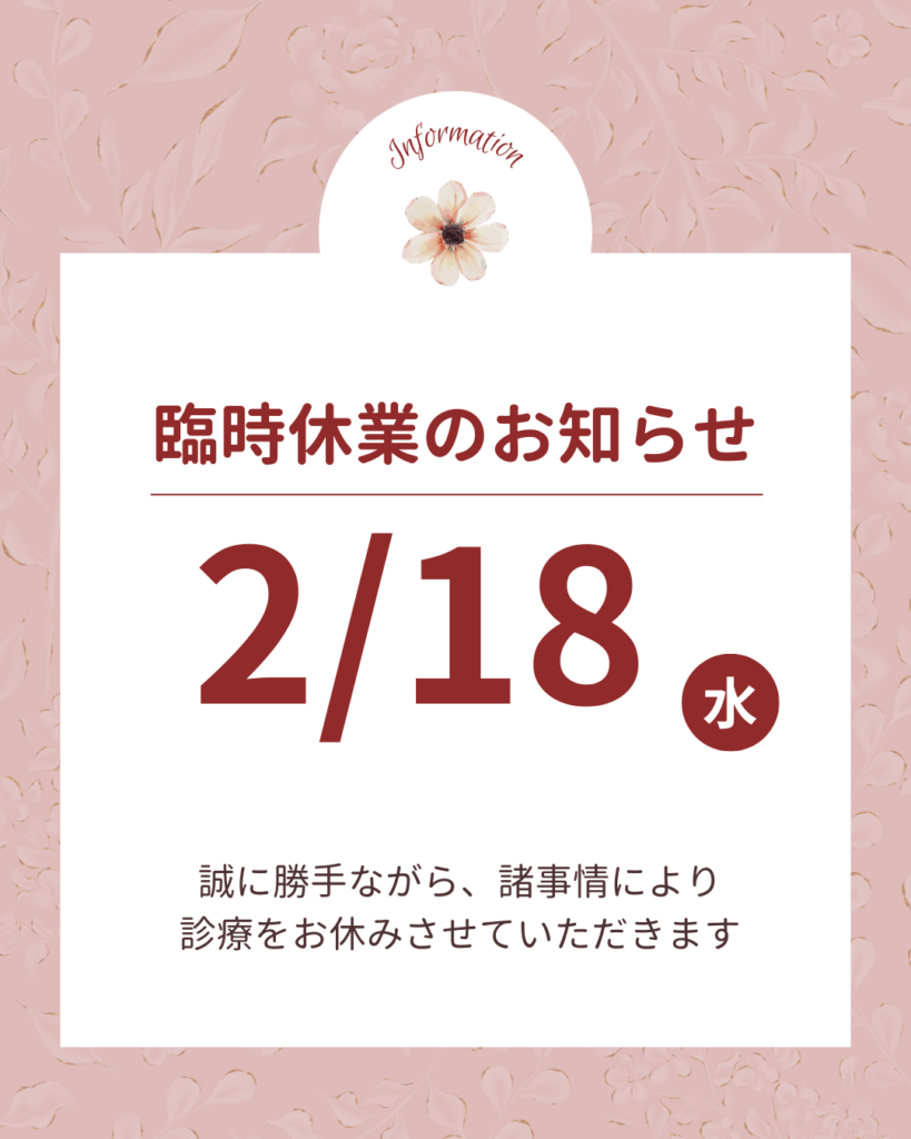 臨時休診について...|犬山市 整体|産後の骨盤矯正、肩こり、腰痛、ボディケア、脱毛、フォト、フォトフェイシャル
